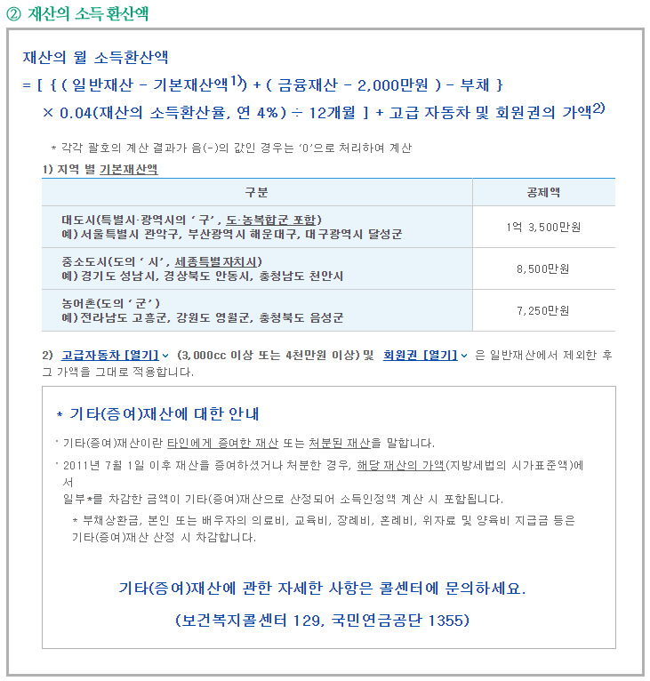소득인정액 = 소득평가액(1) + 재산의 소득 환산액(2)